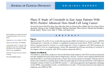 今日,中國(guó)腫瘤界再傳捷報(bào)!廣東省人民醫(yī)院吳一龍教授等肺癌權(quán)威專家領(lǐng)銜的克唑替尼大型Ⅱ期臨床(OO-1201)研究成果在JCO(Journal of Clinical Oncology)正式發(fā)表!