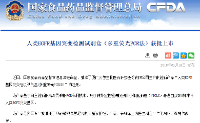 2018年1月19日,中國(guó)食品藥品監(jiān)督管理總局(CFDA)通過創(chuàng)新醫(yī)療器械特別審批通道,批準(zhǔn)艾德生物的Super-ARMS?EGFR基因突變檢測(cè)試劑盒,用于臨床檢測(cè)晚期非小細(xì)胞肺癌(NSCLC)患者血液ctDNA中EGFR基因突變狀態(tài),篩選適合接受一代至三代EGFR靶向藥物治療的患者。這個(gè)以伴隨診斷試劑標(biāo)準(zhǔn)獲批上市的ctDNA檢測(cè)試劑盒,將開啟腫瘤液體活檢的新里程!
