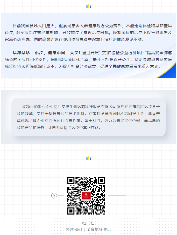 廈門艾德生物醫(yī)藥科技股份有限公司(股票代碼:300685)聚焦在腫瘤精準醫(yī)療分子診斷領域,專注于科技惠民的技術(shù)創(chuàng)新,致力為患者提供合規(guī)、高品質(zhì)的診斷產(chǎn)品和服務,讓患者從精準醫(yī)療中真正獲益。公司擁有國家企業(yè)技術(shù)中心、工信部專精特新小巨人企業(yè)、國家級制造業(yè)單項冠軍企業(yè)、博士后科研工作站、發(fā)改委基因檢測技術(shù)應用示范中心、國家高新技術(shù)企業(yè)、福建省腫瘤高通量測序工程研究中心等資質(zhì),GMP標準廠房獲得國家藥監(jiān)局(NMPA)和歐盟ISO13485資質(zhì)認證;公司擁有ADx-ARMS?、Super-ARMS?、ddCapture?、ADx-HANDLE?等核心技術(shù),核心技術(shù)獲得中國、美國、歐盟、日本授權(quán),榮獲國家科學技術(shù)進步獎二等獎、中國專利獎銀獎;公司產(chǎn)品覆蓋具備精準醫(yī)療條件的各大癌種,多個產(chǎn)品至今尚無競品,除了在國內(nèi)三甲醫(yī)院大規(guī)模應用外,部分產(chǎn)品在日本、韓國獲批上市并進入當?shù)蒯t(yī)保,開創(chuàng)了我國腫瘤伴隨診斷海外獲批的先例。此外,公司下設廈門艾德醫(yī)學檢驗所、上海廈維醫(yī)學檢驗所,擁有醫(yī)療機構(gòu)執(zhí)業(yè)許可證、通過美國病理學會(CAP)認證和ISO15189認可,專業(yè)從事第三方臨檢服務。目前全球數(shù)十個國家和地區(qū)的客戶選擇了艾德產(chǎn)品和服務,每年有數(shù)十萬腫瘤患者從中受益。此外,公司瞄準行業(yè)創(chuàng)新源頭,以伴隨診斷賦能原研藥物臨床,是眾多頂級藥企腫瘤藥物開發(fā)的戰(zhàn)略合作伙伴,是國際知名的民族品牌。