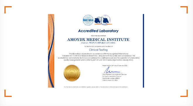 近日,艾德生物旗下廈門艾德醫(yī)學(xué)檢驗(yàn)所獲美國實(shí)驗(yàn)室認(rèn)可協(xié)會(American Association For Laboratory Accreditation,簡稱“A2LA”)頒發(fā)的ISO15189認(rèn)證證書,標(biāo)志著艾德醫(yī)學(xué)檢驗(yàn)所PCR、NGS、FISH、Sanger等多技術(shù)平臺能夠出具國際醫(yī)療機(jī)構(gòu)認(rèn)可的檢測報(bào)告,檢驗(yàn)結(jié)果可在全球多個(gè)國家互認(rèn),是國內(nèi)少數(shù)多技術(shù)平臺同時(shí)獲ISO15189認(rèn)證的醫(yī)學(xué)檢驗(yàn)所,質(zhì)量管理和技術(shù)水平達(dá)國際頂尖水平。