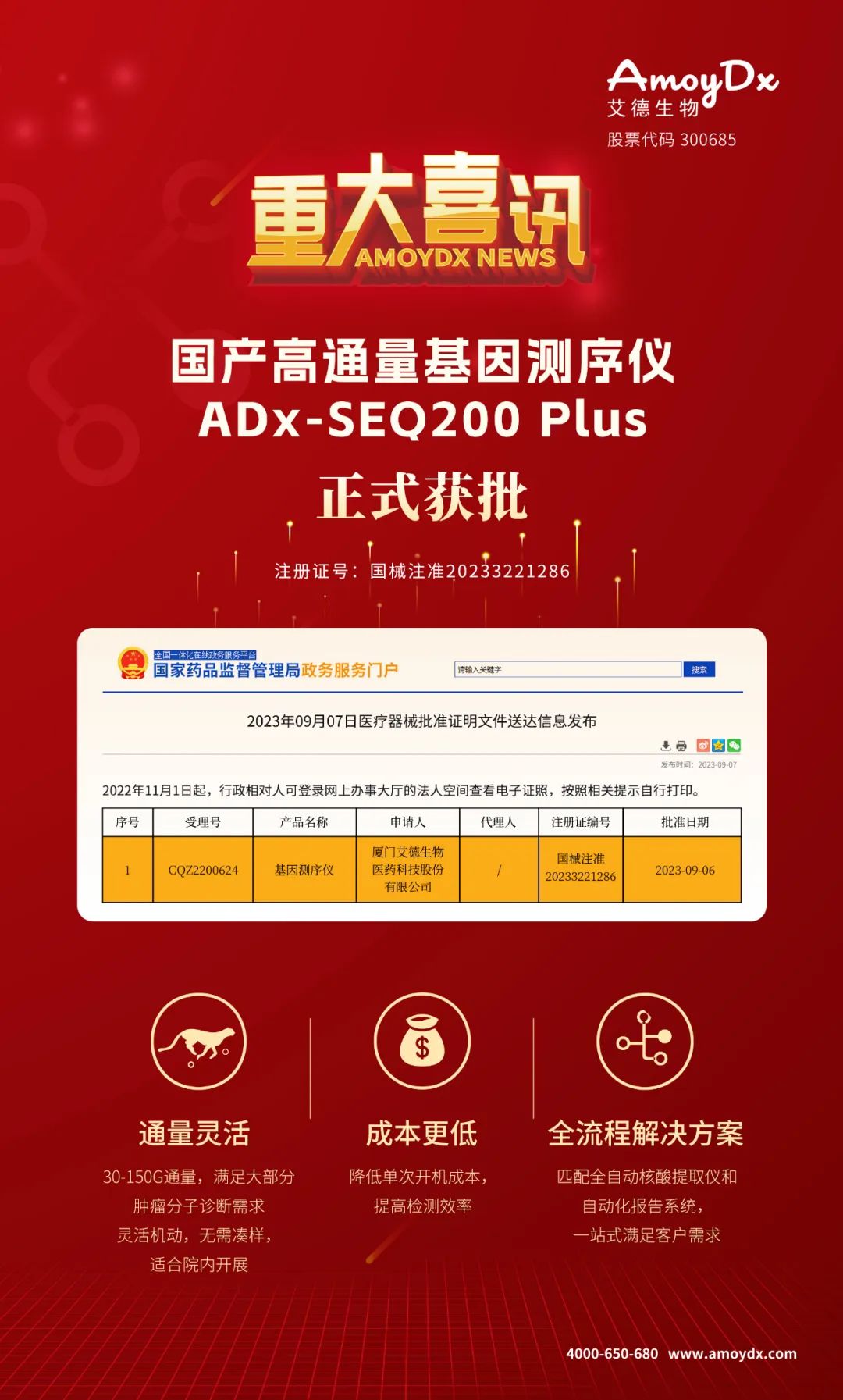 廈門艾德生物醫(yī)藥科技股份有限公司(股票代碼:300685)聚焦在腫瘤精準(zhǔn)醫(yī)療分子診斷領(lǐng)域,專注于科技惠民的技術(shù)創(chuàng)新,致力為患者提供合規(guī)、高品質(zhì)的診斷產(chǎn)品和服務(wù),讓患者從精準(zhǔn)醫(yī)療中真正獲益。公司擁有國家企業(yè)技術(shù)中心、工信部專精特新小巨人企業(yè)、國家級(jí)制造業(yè)單項(xiàng)冠軍企業(yè)、博士后科研工作站、發(fā)改委基因檢測(cè)技術(shù)應(yīng)用示范中心、國家高新技術(shù)企業(yè)、福建省腫瘤高通量測(cè)序工程研究中心等資質(zhì),GMP標(biāo)準(zhǔn)廠房獲得國家藥監(jiān)局(NMPA)和歐盟ISO13485資質(zhì)認(rèn)證;公司擁有ADx-ARMS?、Super-ARMS?、ddCapture?、ADx-HANDLE?等核心技術(shù),核心技術(shù)獲得中國、美國、歐盟、日本授權(quán),榮獲國家科學(xué)技術(shù)進(jìn)步獎(jiǎng)二等獎(jiǎng)、中國專利獎(jiǎng)銀獎(jiǎng);公司產(chǎn)品覆蓋具備精準(zhǔn)醫(yī)療條件的各大癌種,多個(gè)產(chǎn)品至今尚無競(jìng)品,除了在國內(nèi)三甲醫(yī)院大規(guī)模應(yīng)用外,部分產(chǎn)品在日本、韓國獲批上市并進(jìn)入當(dāng)?shù)蒯t(yī)保,開創(chuàng)了我國腫瘤伴隨診斷海外獲批的先例。此外,公司下設(shè)廈門艾德醫(yī)學(xué)檢驗(yàn)所、上海廈維醫(yī)學(xué)檢驗(yàn)所,擁有醫(yī)療機(jī)構(gòu)執(zhí)業(yè)許可證、通過美國病理學(xué)會(huì)(CAP)認(rèn)證和ISO15189認(rèn)可,專業(yè)從事第三方臨檢服務(wù)。目前全球數(shù)十個(gè)國家和地區(qū)的客戶選擇了艾德產(chǎn)品和服務(wù),每年有數(shù)十萬腫瘤患者從中受益。此外,公司瞄準(zhǔn)行業(yè)創(chuàng)新源頭,以伴隨診斷賦能原研藥物臨床,是眾多頂級(jí)藥企腫瘤藥物開發(fā)的戰(zhàn)略合作伙伴,是國際知名的民族品牌。