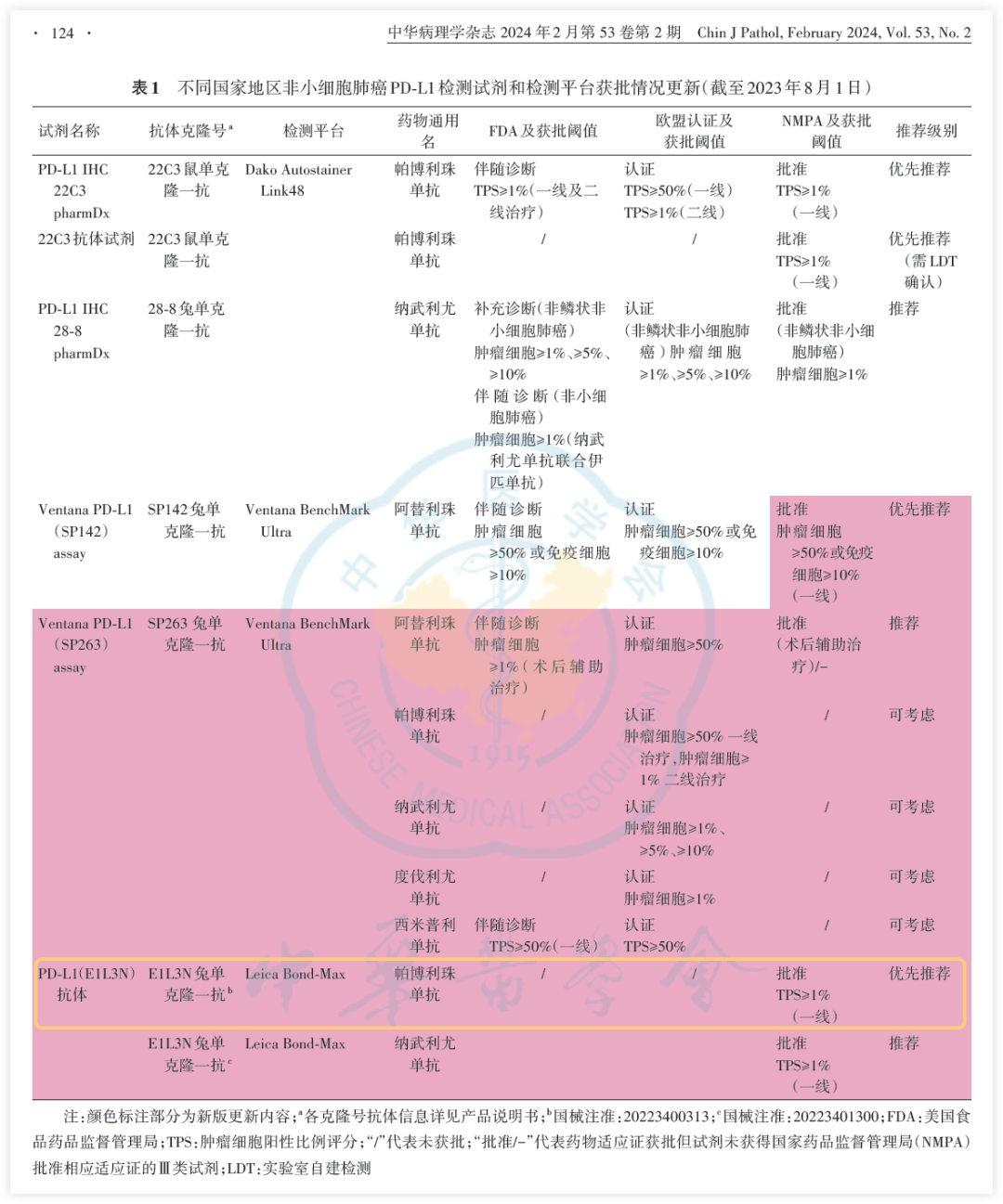 《中華病理學(xué)雜志》2023版PD-L1共識關(guān)于檢測試劑和平臺的推薦更新