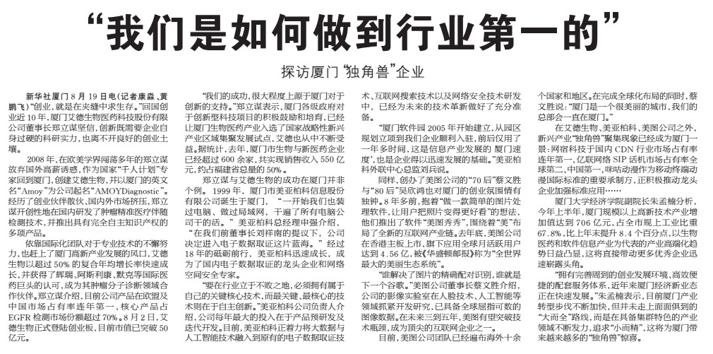 廈門(mén)艾德生物醫(yī)藥科技股份有限公司(股票代碼:300685)聚焦在腫瘤精準(zhǔn)醫(yī)療分子診斷領(lǐng)域,專(zhuān)注于科技惠民的技術(shù)創(chuàng)新,致力為患者提供合規(guī)、高品質(zhì)的診斷產(chǎn)品和服務(wù),讓患者從精準(zhǔn)醫(yī)療中真正獲益。公司擁有國(guó)家企業(yè)技術(shù)中心、工信部專(zhuān)精特新小巨人企業(yè)、國(guó)家級(jí)制造業(yè)單項(xiàng)冠軍企業(yè)、博士后科研工作站、發(fā)改委基因檢測(cè)技術(shù)應(yīng)用示范中心、國(guó)家高新技術(shù)企業(yè)、福建省腫瘤高通量測(cè)序工程研究中心等資質(zhì),GMP標(biāo)準(zhǔn)廠房獲得國(guó)家藥監(jiān)局(NMPA)和歐盟ISO13485資質(zhì)認(rèn)證;公司擁有ADx-ARMS?、Super-ARMS?、ddCapture?、ADx-HANDLE?等核心技術(shù),核心技術(shù)獲得中國(guó)、美國(guó)、歐盟、日本授權(quán),榮獲國(guó)家科學(xué)技術(shù)進(jìn)步獎(jiǎng)二等獎(jiǎng)、中國(guó)專(zhuān)利獎(jiǎng)銀獎(jiǎng);公司產(chǎn)品覆蓋具備精準(zhǔn)醫(yī)療條件的各大癌種,多個(gè)產(chǎn)品至今尚無(wú)競(jìng)品,除了在國(guó)內(nèi)三甲醫(yī)院大規(guī)模應(yīng)用外,部分產(chǎn)品在日本、韓國(guó)獲批上市并進(jìn)入當(dāng)?shù)蒯t(yī)保,開(kāi)創(chuàng)了我國(guó)腫瘤伴隨診斷海外獲批的先例。此外,公司下設(shè)廈門(mén)艾德醫(yī)學(xué)檢驗(yàn)所、上海廈維醫(yī)學(xué)檢驗(yàn)所,擁有醫(yī)療機(jī)構(gòu)執(zhí)業(yè)許可證、通過(guò)美國(guó)病理學(xué)會(huì)(CAP)認(rèn)證和ISO15189認(rèn)可,專(zhuān)業(yè)從事第三方臨檢服務(wù)。目前全球數(shù)十個(gè)國(guó)家和地區(qū)的客戶選擇了艾德產(chǎn)品和服務(wù),每年有數(shù)十萬(wàn)腫瘤患者從中受益。此外,公司瞄準(zhǔn)行業(yè)創(chuàng)新源頭,以伴隨診斷賦能原研藥物臨床,是眾多頂級(jí)藥企腫瘤藥物開(kāi)發(fā)的戰(zhàn)略合作伙伴,是國(guó)際知名的民族品牌。