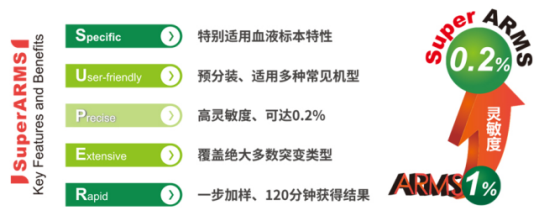 Super-ARMS技術(shù)是艾德生物自主開發(fā)的新一代血液基因突變檢測技術(shù),基于ADx-ARMS自主創(chuàng)新技術(shù)的革命性升級(jí),延續(xù)簡便、快速、可及性強(qiáng)、判讀客觀等特點(diǎn),通過全新的引物設(shè)計(jì)思路及優(yōu)化的體系配方,實(shí)現(xiàn)靈敏度大幅提升至0.2%,更適合血漿ctDNA EGFR基因突變檢測。