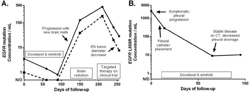 圖2 血漿EGFR突變分型反映對治療的應(yīng)答