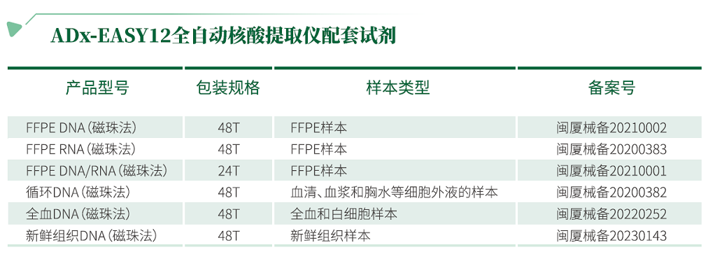 EASY 12 全自動(dòng)核酸提取儀全自動(dòng)化實(shí)現(xiàn)FFPE樣本DNA、RNA單提、共提,及大體積血漿、血液、胸水、新鮮組織DNA等核酸提取功能。采用磁珠移液法提取純化原理,搭配配套試劑通過(guò)側(cè)壁吸附磁珠、轉(zhuǎn)移液體的方式,實(shí)現(xiàn)核酸的純化和富集。